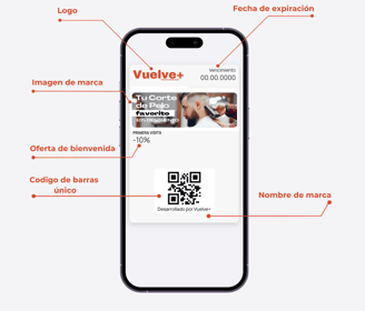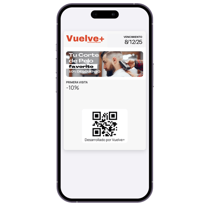 Vuelve+ es una plataforma todo en uno, diseñada para ayudarte a hacer crecer tu barbería con soluciones prácticas y efectivas. Con ella, podrás fidelizar a tus clientes mediante tarjetas digitales personalizadas, que pueden guardar cómodamente en su móvil (Apple Wallet o Google Wallet), sin necesidad de instalar ninguna app. Además, te permite automatizar tu marketing con el envío de notificaciones push, recordatorios de citas y mensajes personalizados sin complicaciones. Gracias a su sistema de recompensas y segmentación inteligente, aumentarás la frecuencia de visitas y el valor de cada servicio. También podrás captar nuevos clientes con promociones de bienvenida y tarjetas específicas para incentivar sus primeras visitas. Y lo más importante: convertirás visitas ocasionales en clientes frecuentes, gracias a estrategias automatizadas de seguimiento que mantienen tu barbería presente en su día a día.