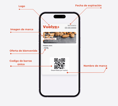 Diseña fácilmente tarjetas personalizadas que reflejen el estilo e identidad propia de tu panadería-pastelería. Tus clientes podrán guardarlas cómodamente en su móvil, mediante Apple Wallet o Google Wallet, sin necesidad de instalar ninguna app adicional.